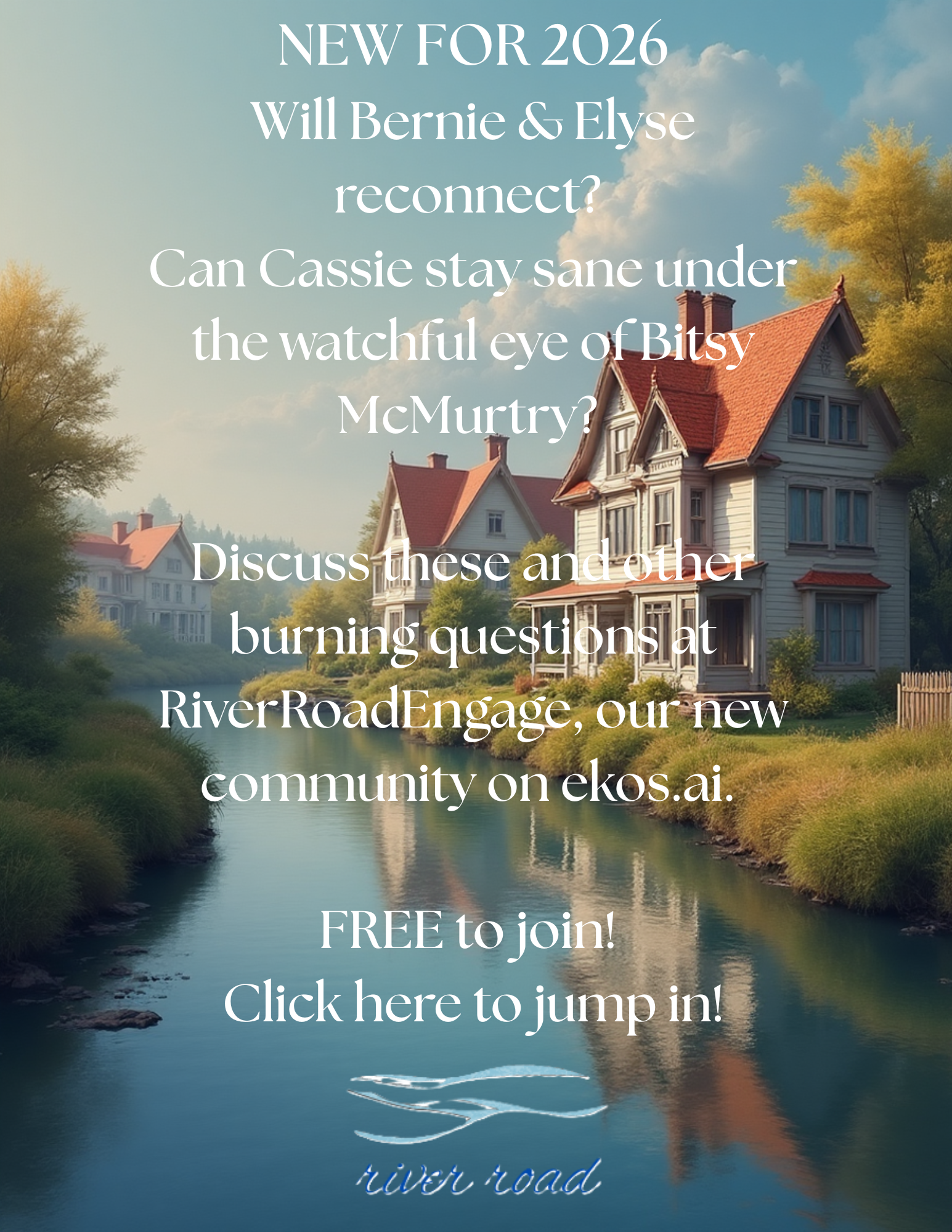Money, murder, and mayhem persist in this small riverside hamlet where old and new don't mix. Welcome to River Road, a multi-platform soap opera and ongoing homage to the time-honored tradition of daytime storytelling.